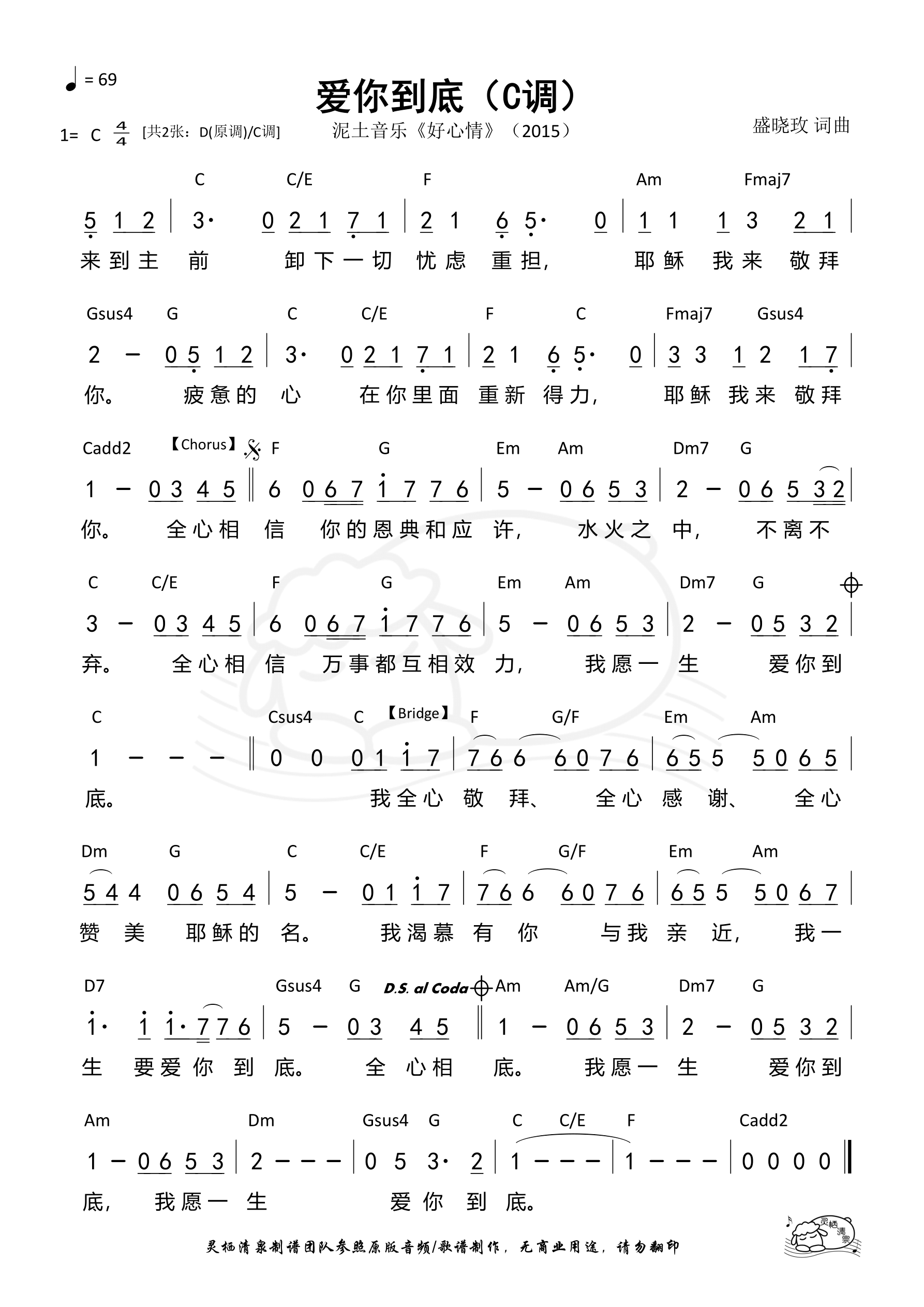 词曲:盛晓玫 歌手:泥土音乐 专辑:好心情 年份:2015