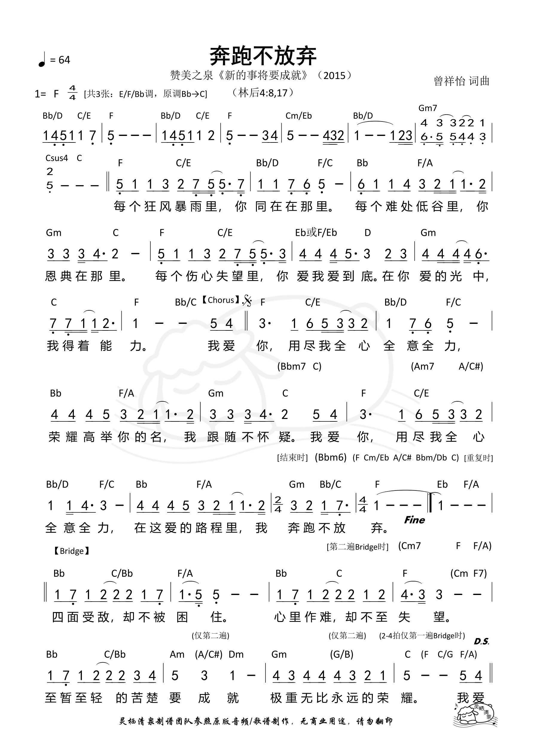 词曲:曾祥怡 歌手:赞美之泉 专辑:新的事将要成就 年份:2015