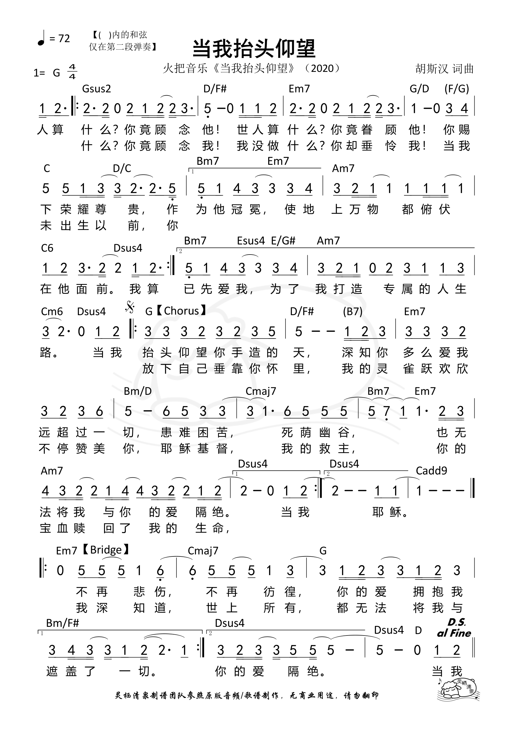 词曲:胡斯汉 歌手:火把音乐 专辑:当我抬头仰望 年份:2020