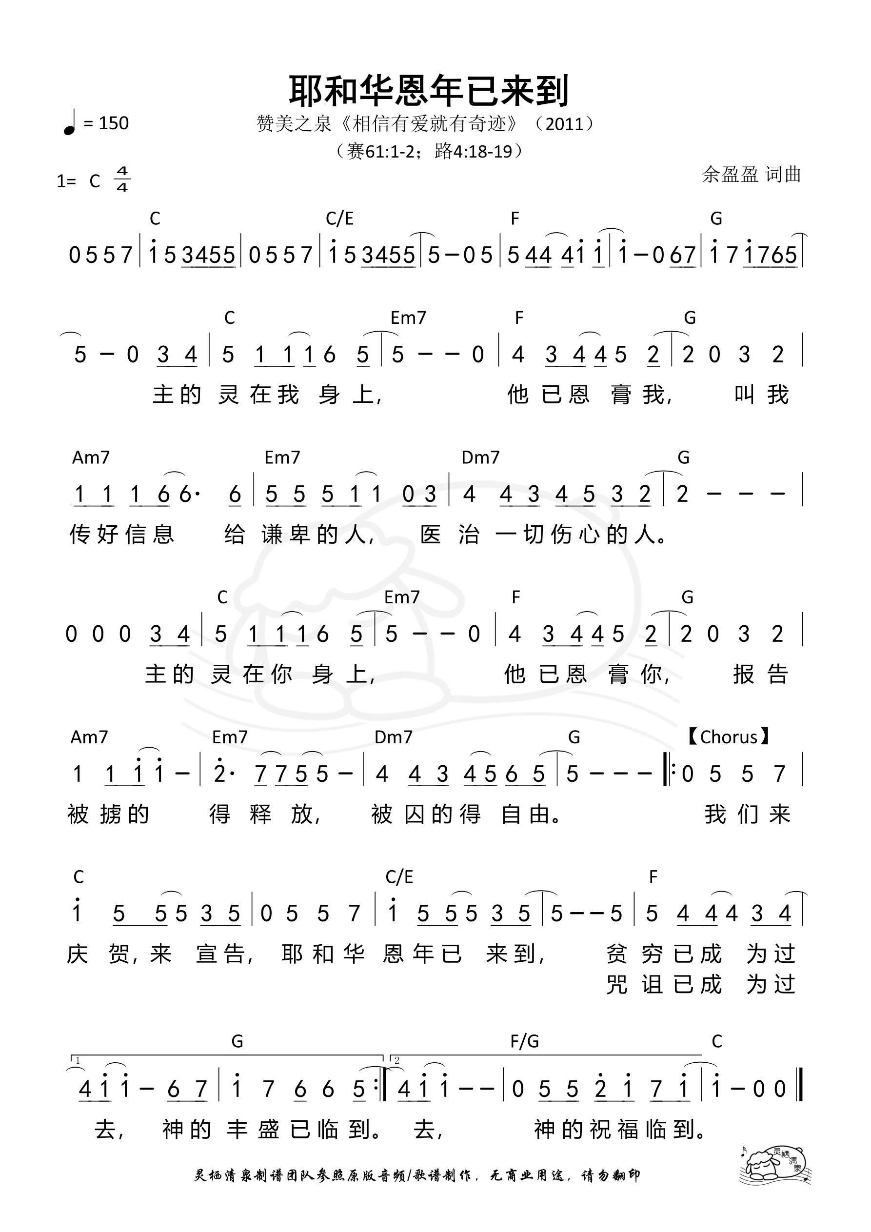 词曲:余盈盈 歌手:赞美之泉 专辑:相信有爱就有奇迹