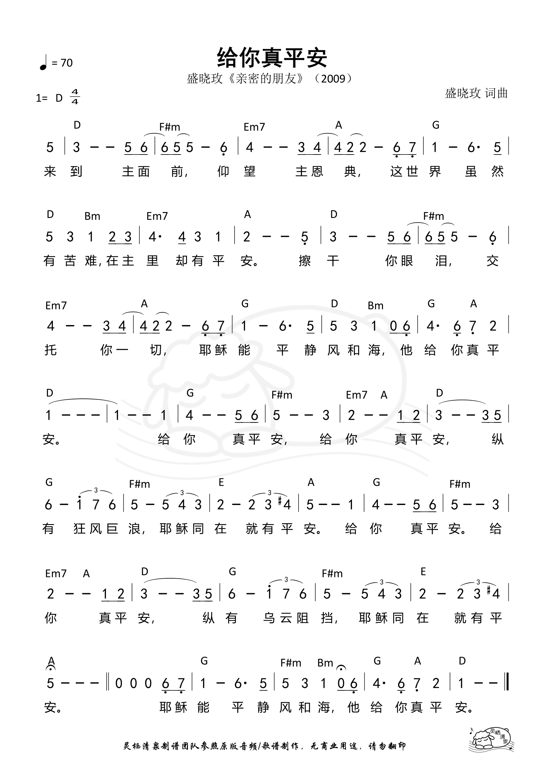 [264] 给你真平安(D调/泥土音乐)