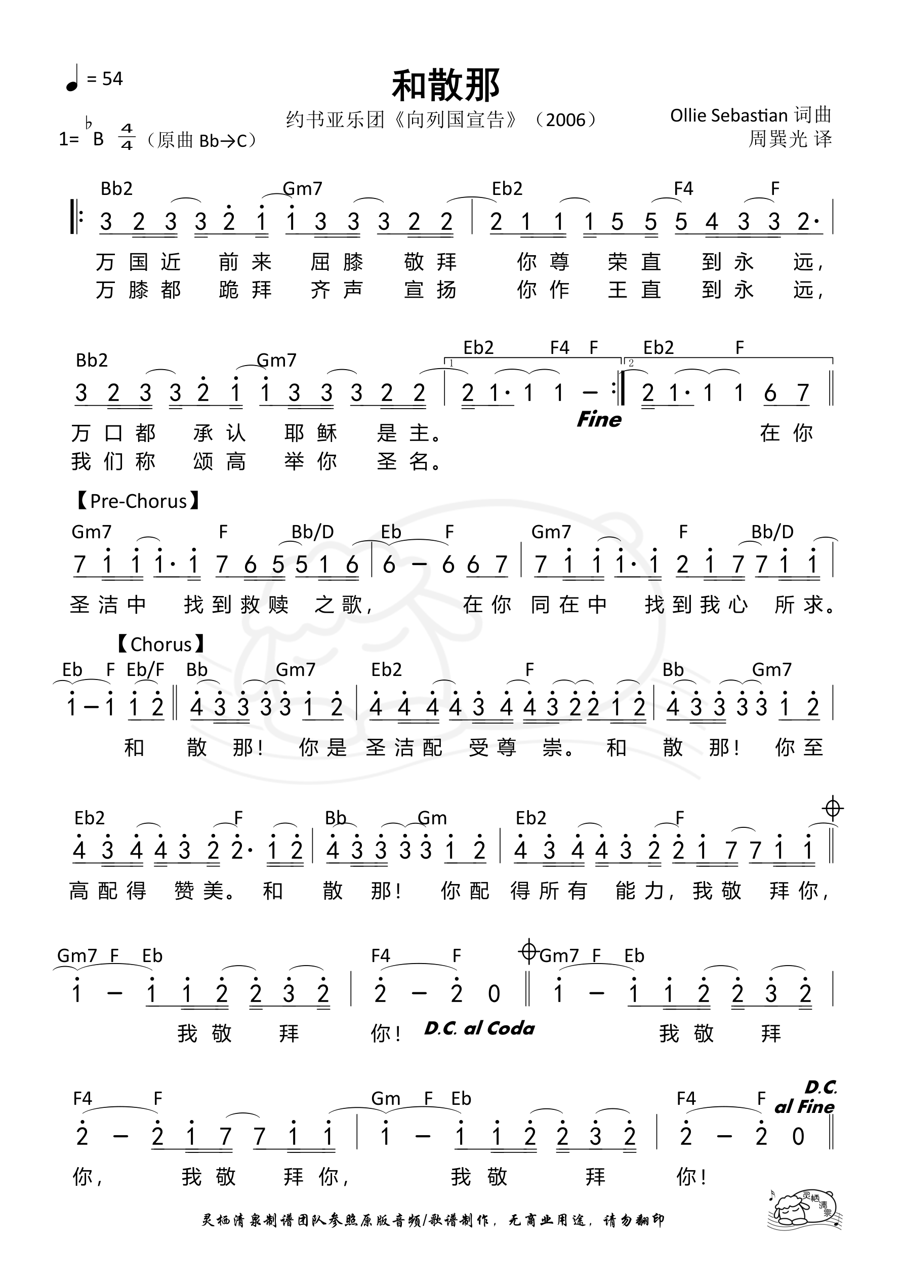 词曲:Ollie Sebastian 歌手:约书亚乐团 专辑:向列国宣告 年份:2006