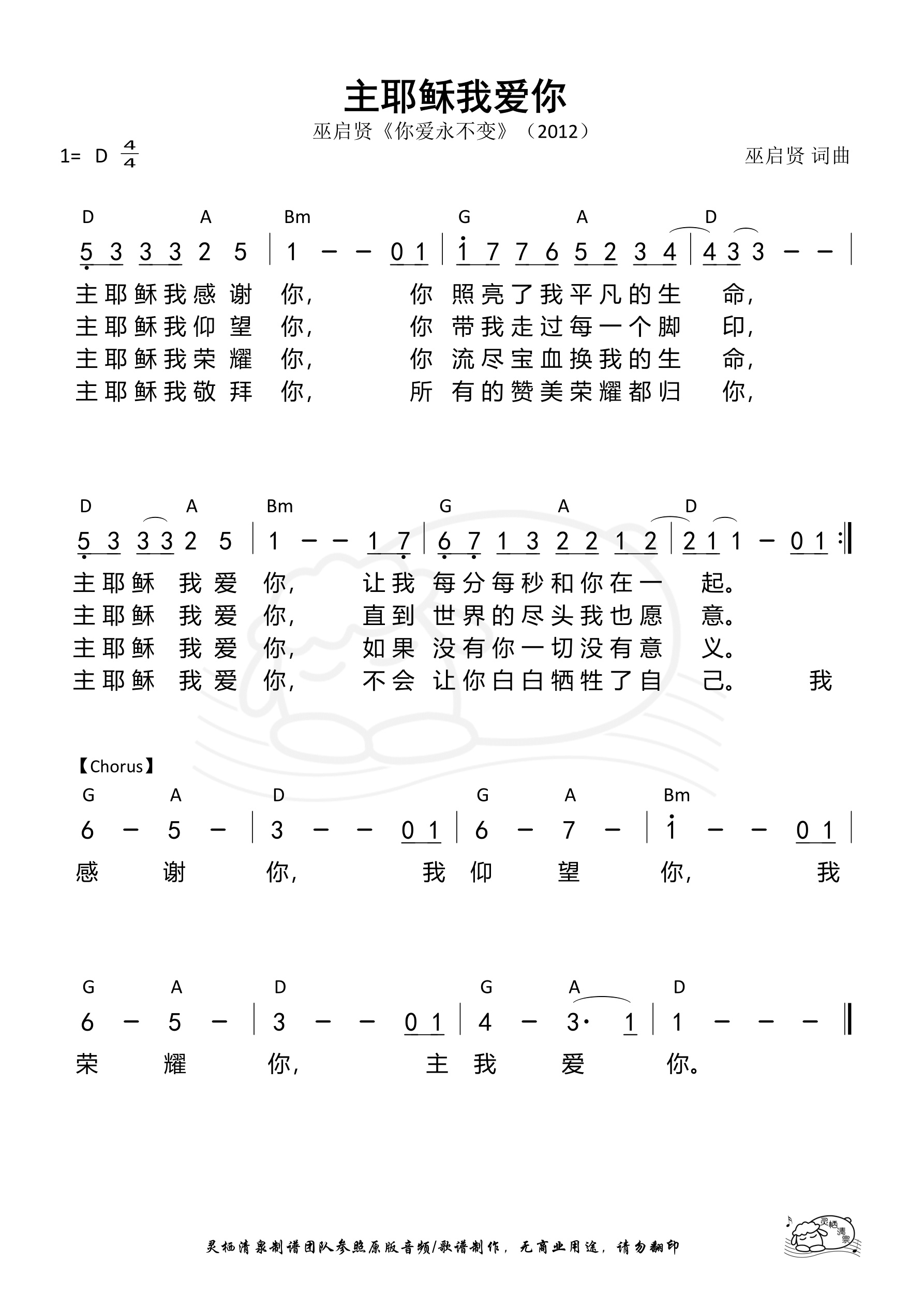[298] 主耶稣我爱你(D调/巫启贤)