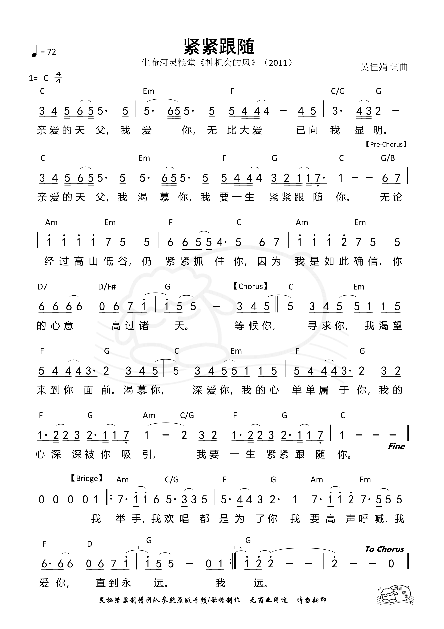 词曲:吴佳娟 歌手:生命河灵粮堂 专辑:神机会的风 发行:2011
