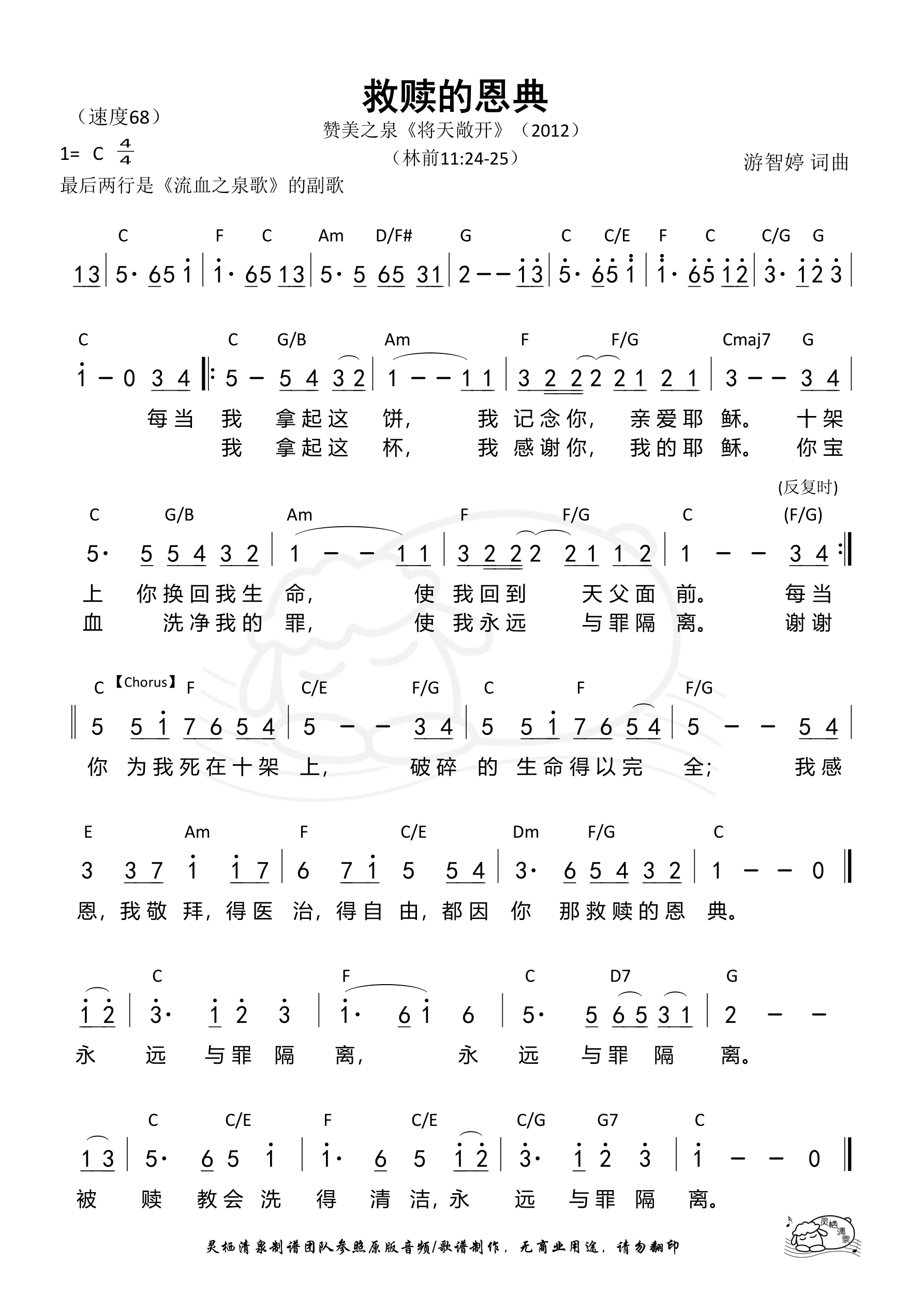 词曲:游智婷 歌手:赞美之泉 专辑:将天敞开 发行:2012
