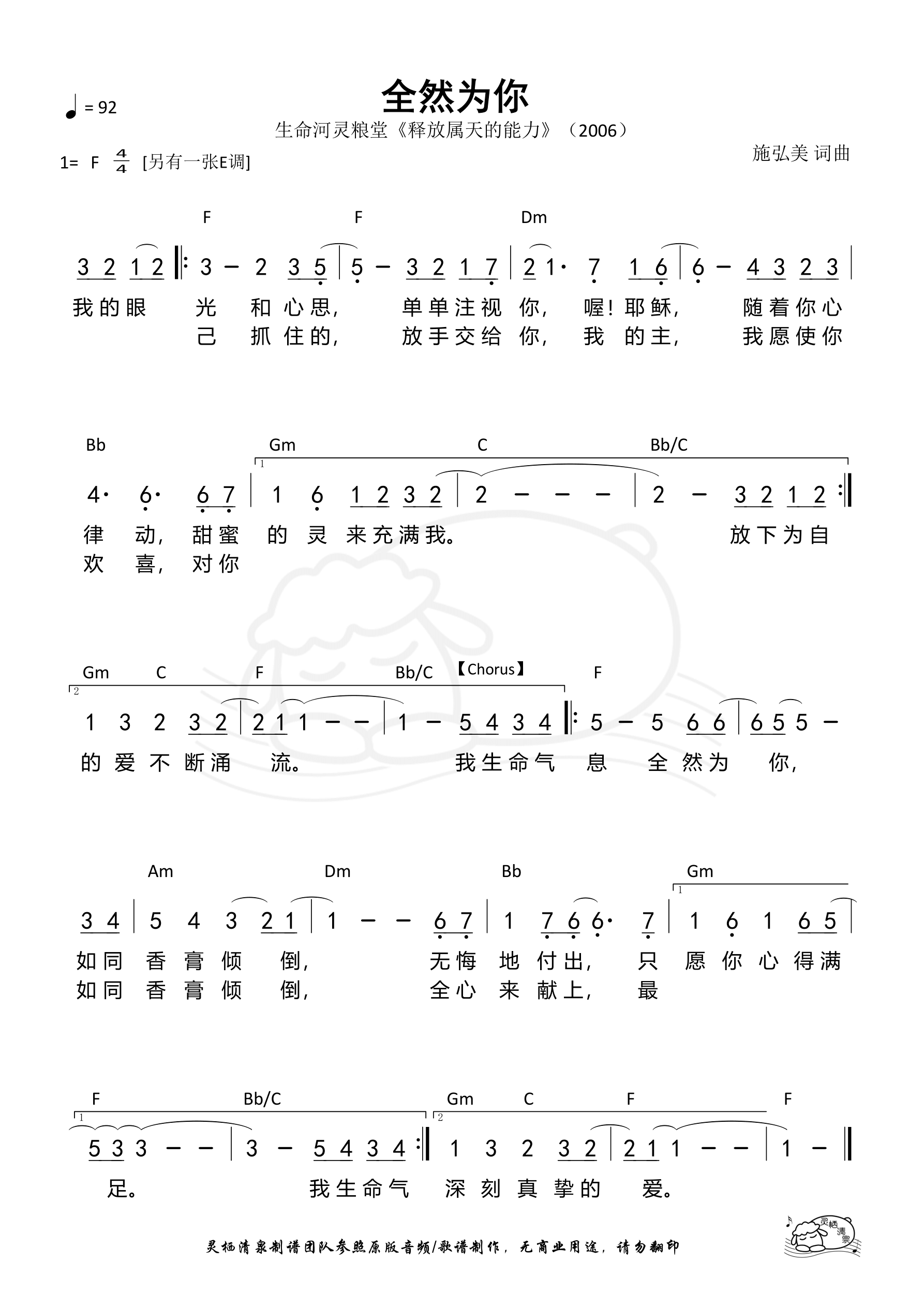 词曲:施弘美 歌手:生命河灵粮堂 专辑:释放属天的能力 发行:2006