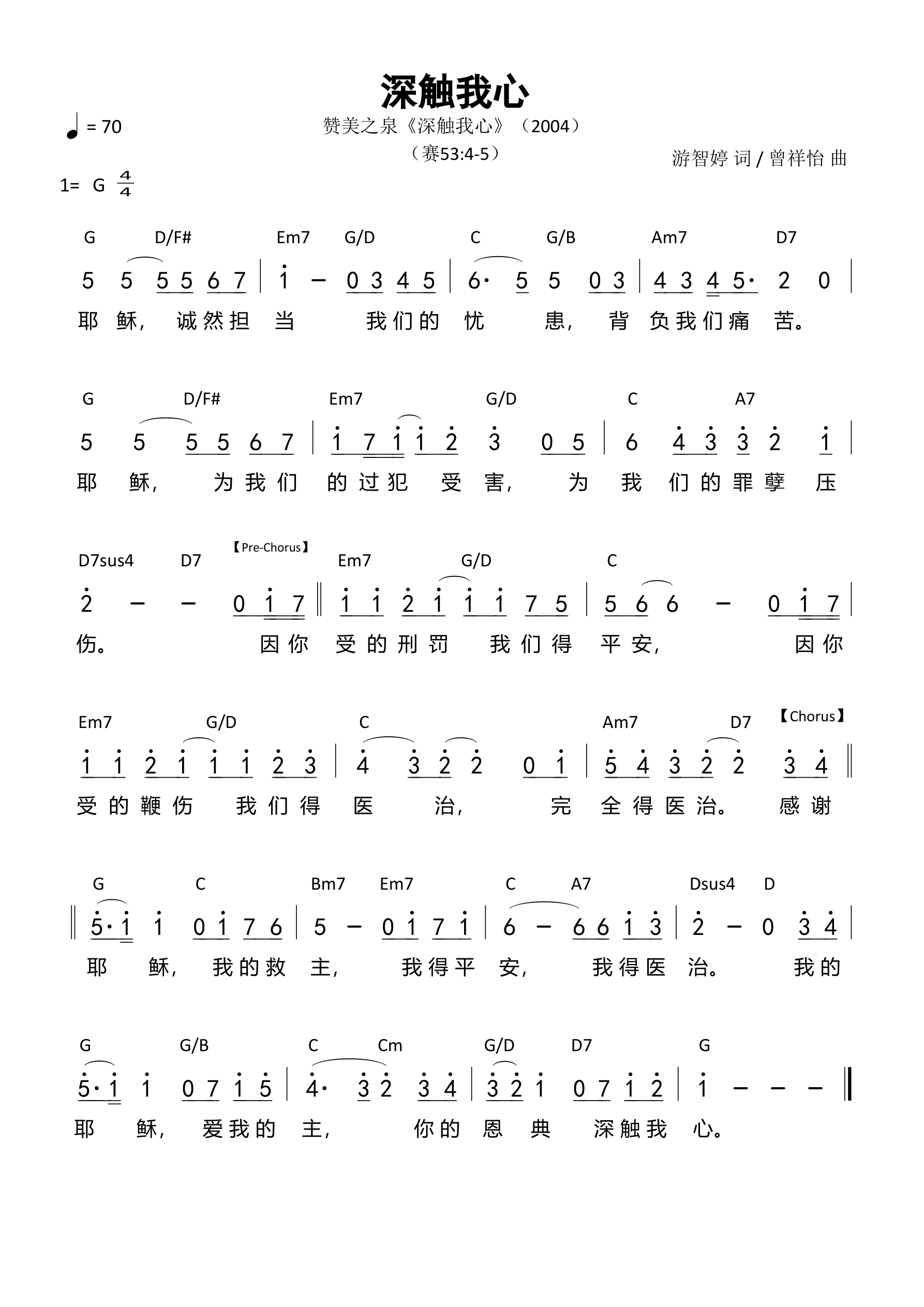 作词:游智婷 作曲:曾祥怡 歌手:赞美之泉 专辑:深触我心 发行:2004